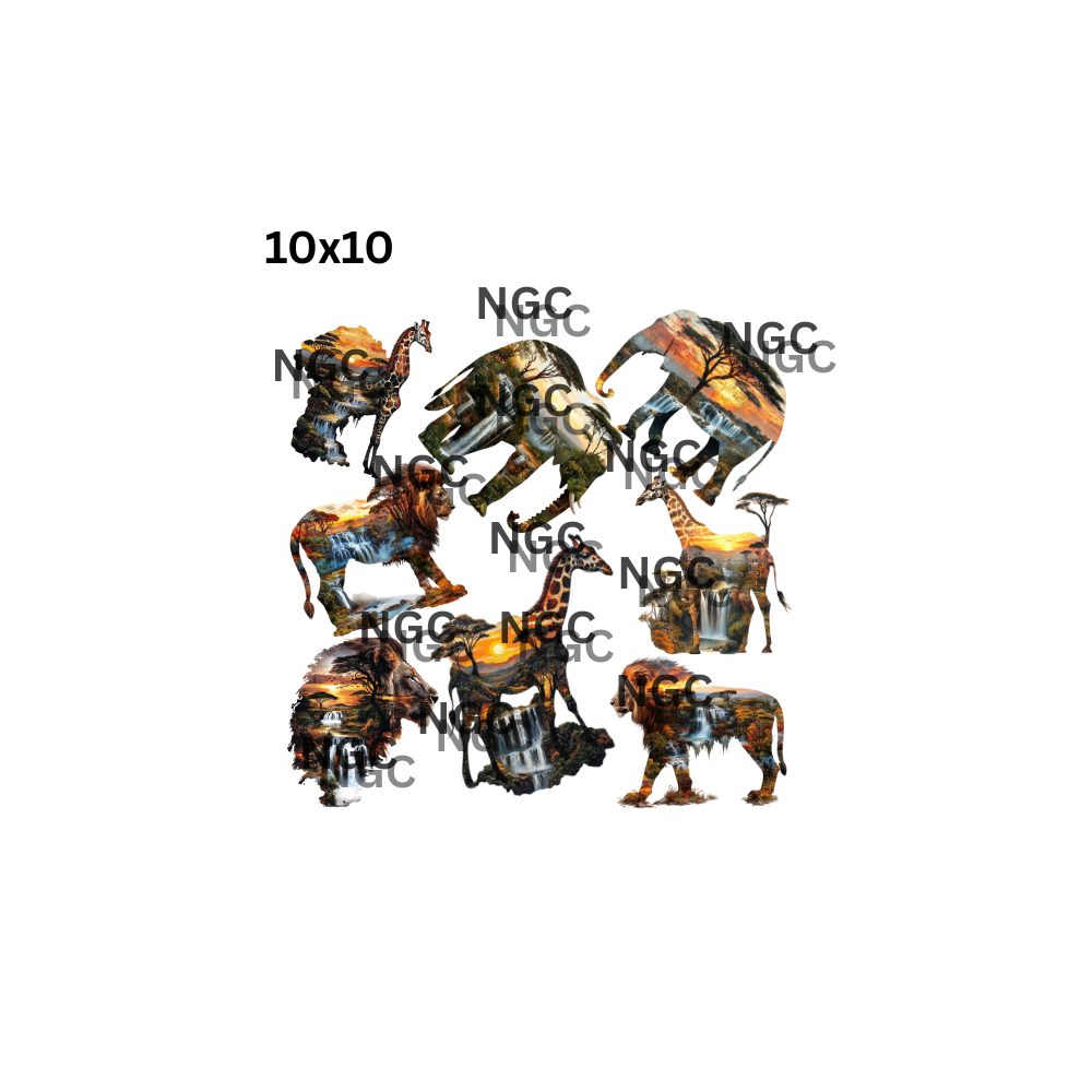 10x10 double exposed safari animals