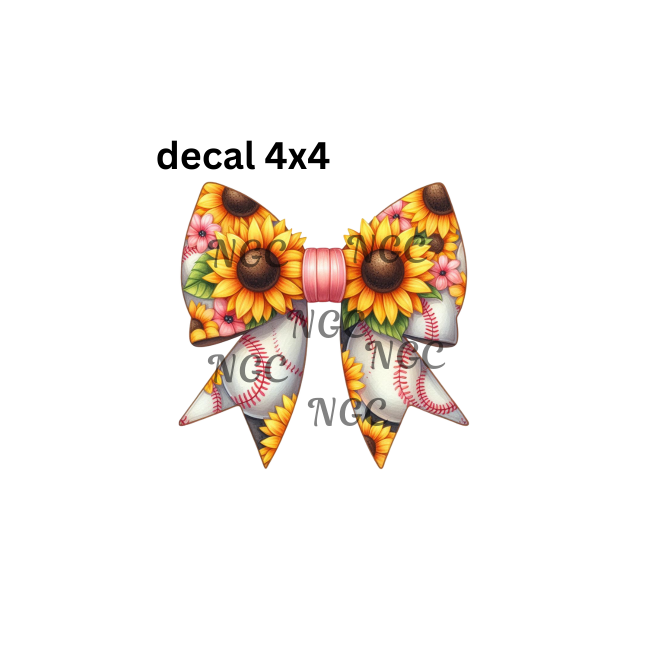 baseball & sunflowers bow